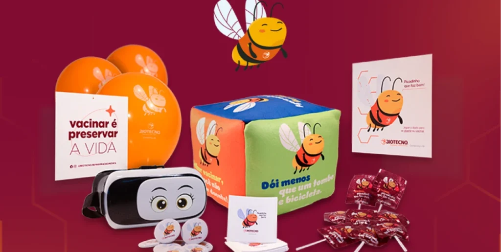 Para tornar a vacinação um momento leve e prazeroso, a Biotecno criou o Kit de Vacinação Lúdica da Bia.